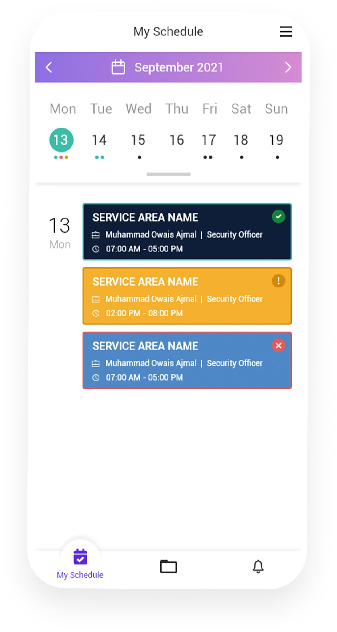 Users can access powerful features including scheduling and time tracking, guard patrol system, incident management, leave management, and automated welfare check-ins for lone workers. Managers also benefit from detailed dashboards, alerts, and streamlined communication—all from a single mobile platform.