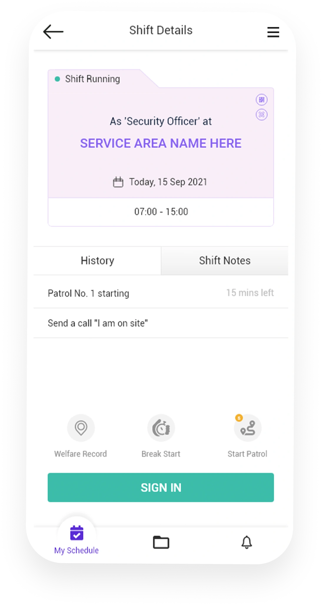 Sign in or out of your shift by reaching the service area to calculate working hours and create digital timecards for better time-clock accuracy.